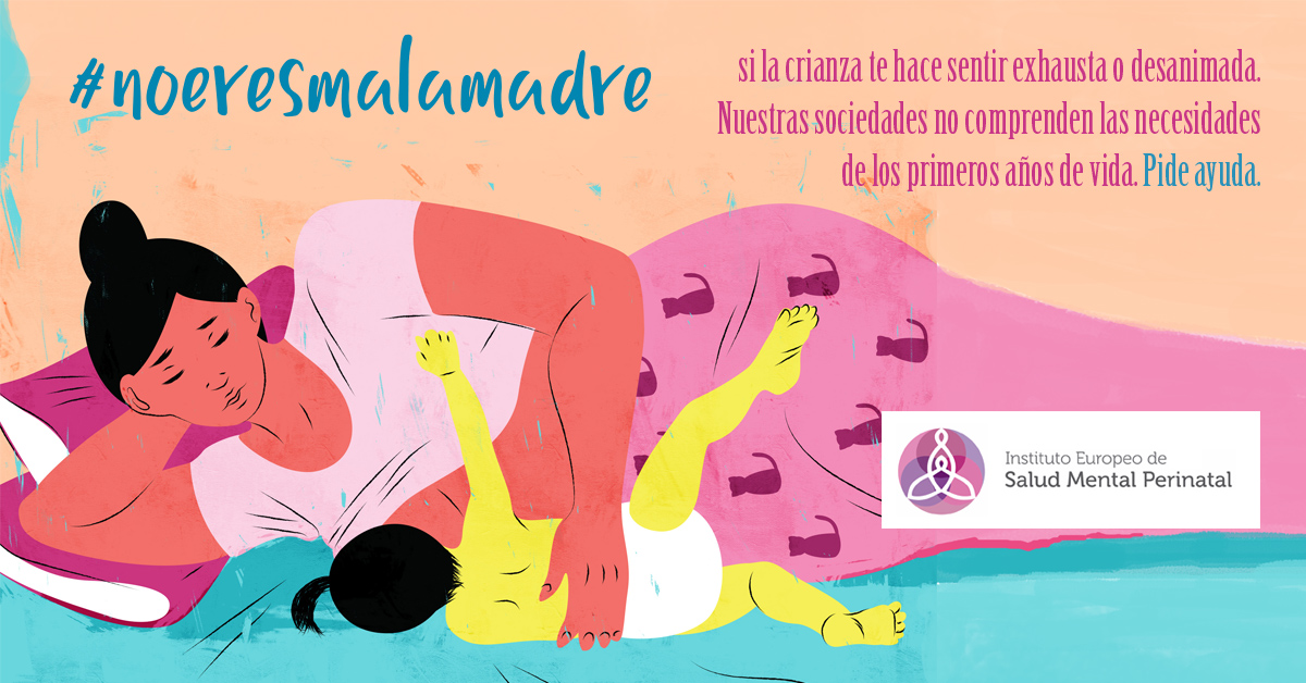 Desde el Instituto Europeo de Salud Mental Perinatal hemos lanzado esta campaña: #Noeresmalamadre con el fin de erradicar el estigma que aun rodea la enfermedad mental materna y sensibilizar a toda la sociedad sobre la necesidad de prevenir y tratar adecuadamente estos trastornos. Sin ayuda ni tratamiento las consecuencias son dramáticas, y van desde el suicidio de las madres hasta los efectos negativos en el desarrollo del bebé o las rupturas de pareja, etc. Cada día de esta semana abordaremos uno de los temas ilustrados en los carteles.